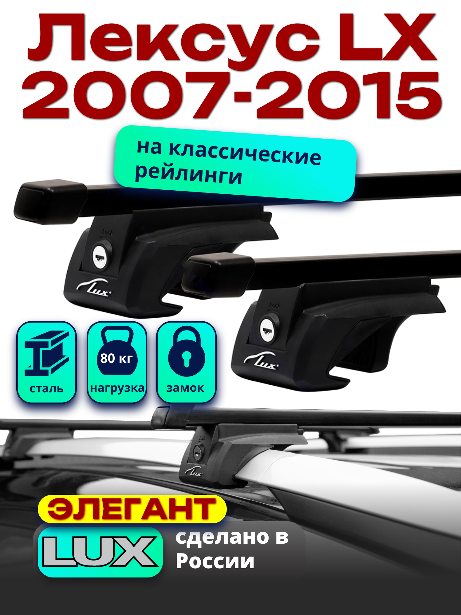 Багажник на крышу Лексус LX 2007-2015 на рейлинги, черный, прямоугольные дуги, LUX элегант интересное: