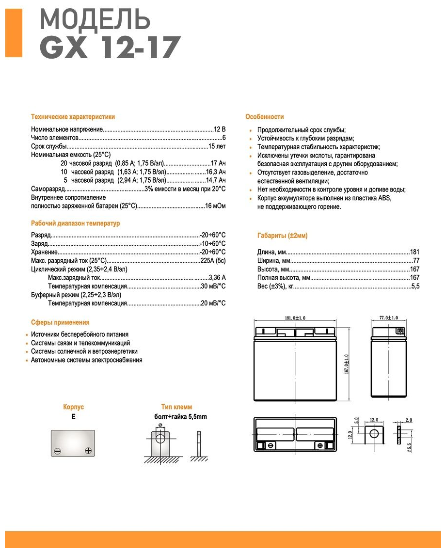 Аккумуляторная батарея Delta GX 12-17 (12V / 17Ah)