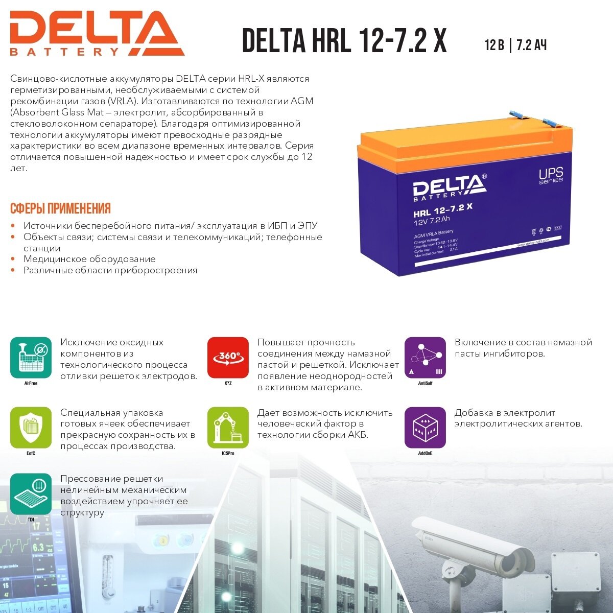 СохранитьАккумулятор Delta HRL 12-7.2 X 12V 7.2Ah аккумулятор для ИБП, UPS интересное: