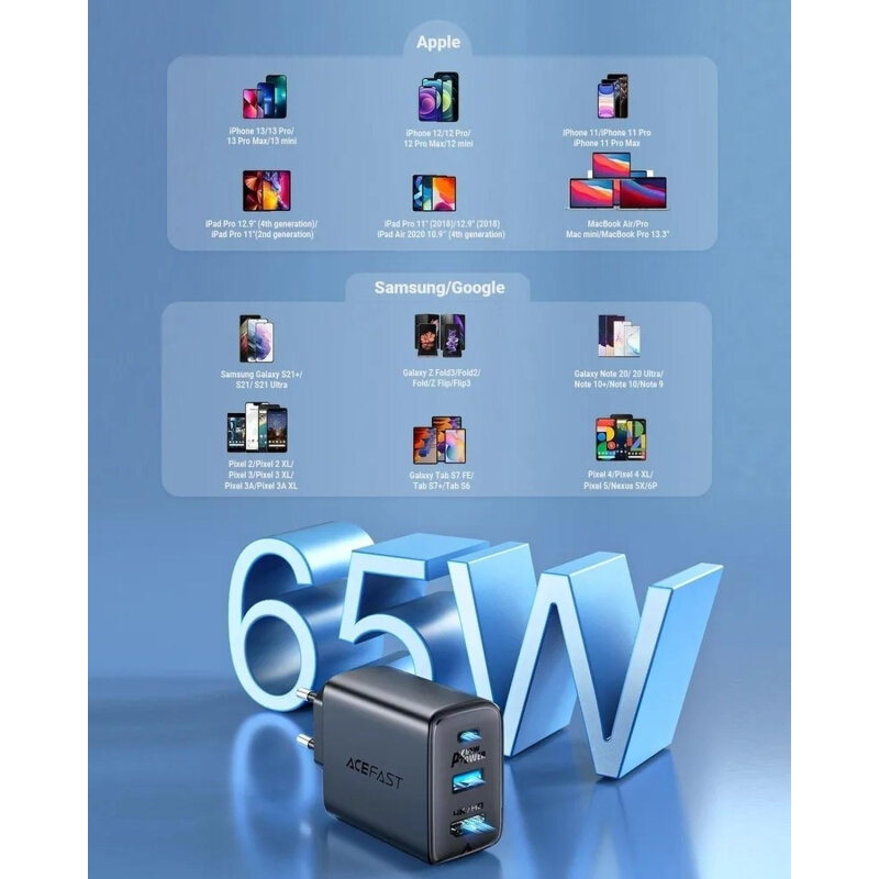 Ниже Вы можете прочитать отзывы на Зарядное устройство ACEFAST сетевое A17 65W GaN/USB-C/черный, ознакомится с подробными характеристиками, посмотреть интересные обзоры и фотографии на Зарядное устройство ACEFAST сетевое A17 65W GaN/USB-C/черный.