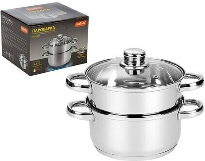 Пароварка MALLONY Пароварка MEDIANO 2х-уровневая из нерж стали, объем 2,5 л, индукция/капс дно (008524)