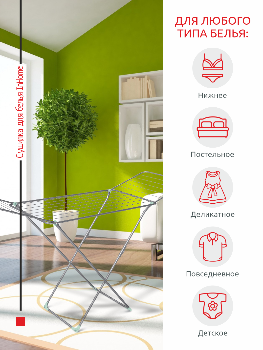 Сушилка для белья Inhome напольная, раскладная, 20 м серебристая INCD2/3
