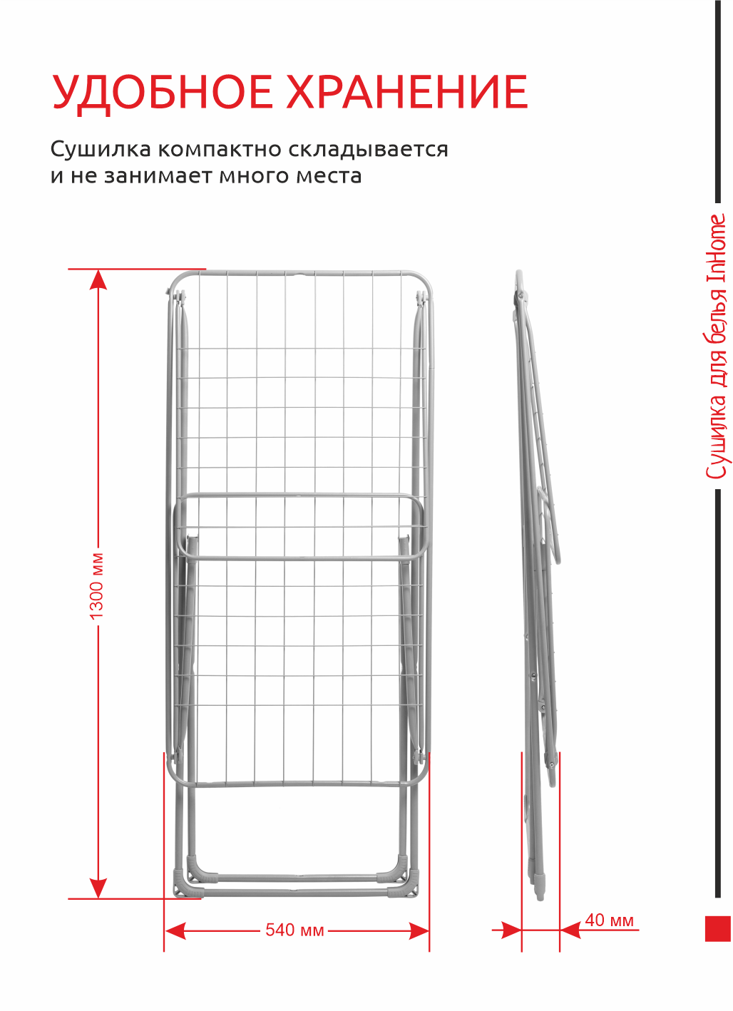 Сушилка для белья InHome напольная раскладная,197х54х111 см, 20 м черная INCD2/1 .