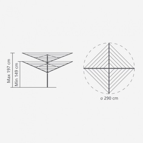 Сушилка Brabantia уличная Lift-O-Matic Advance 50 м с чехлом и мешком для прищепок цвет серый 100222