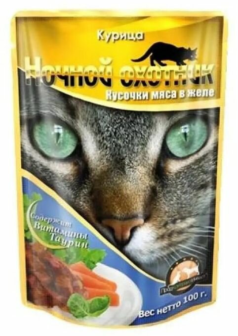 Ночной охотник 100г консервы для кошек Курица кусочки в желе пауч