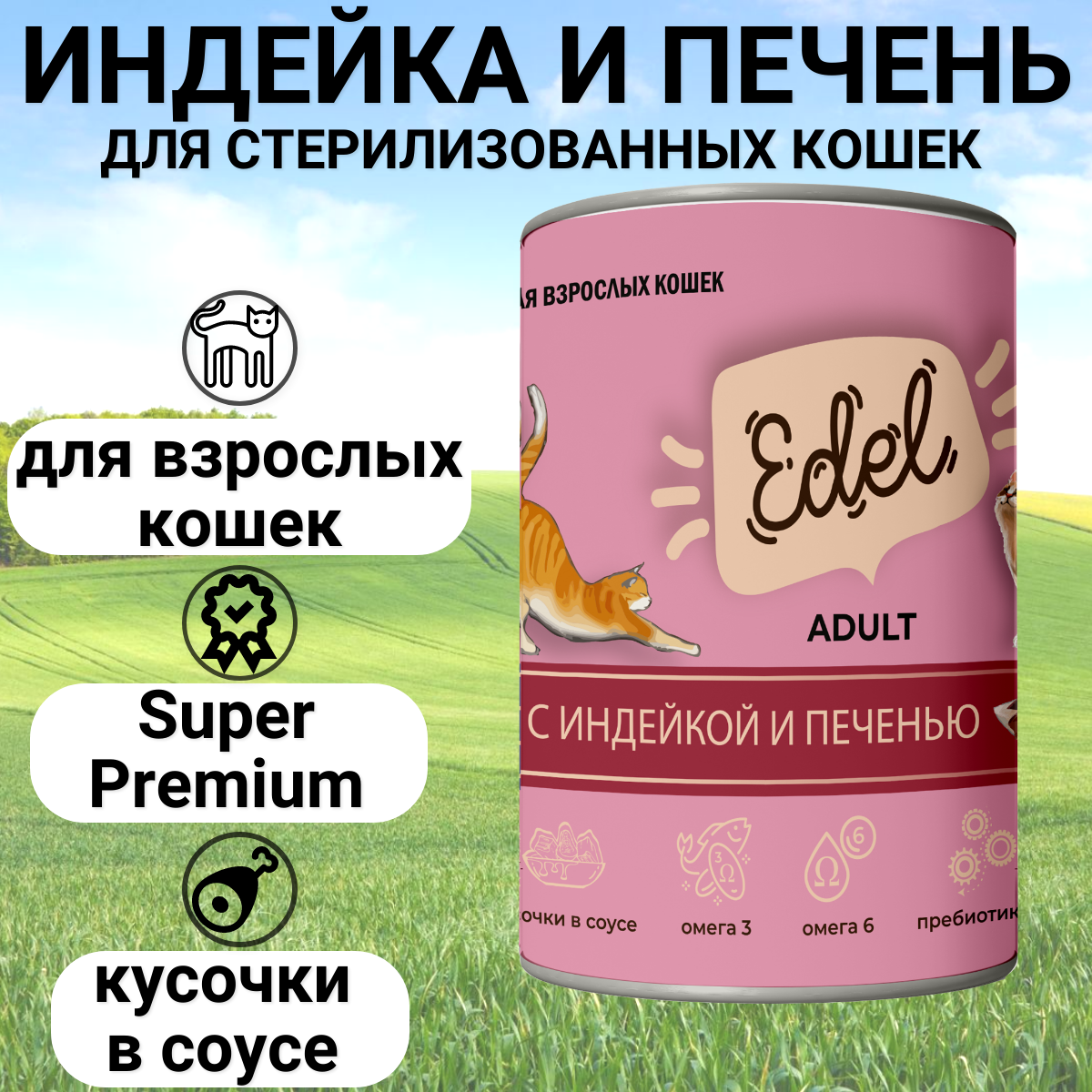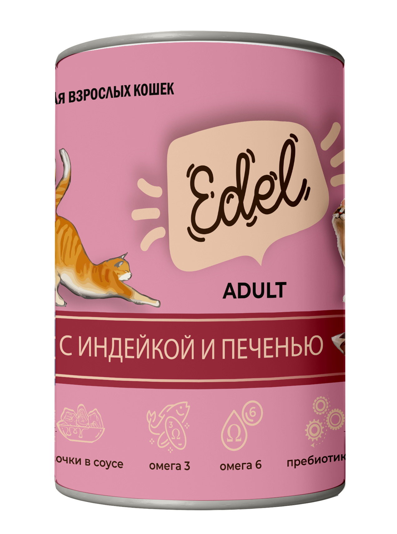 Edel Cat влажный корм для взрослых кошек всех пород, с индейкой и печенью (12шт в уп) 400 гр