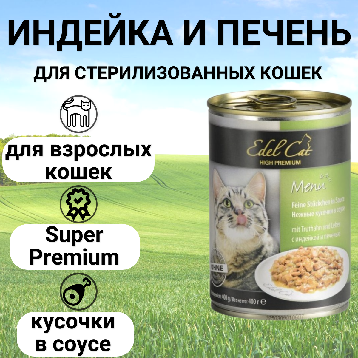 корм для кошек Edel Cat индейка, печень 400 г (кусочки в соусе)