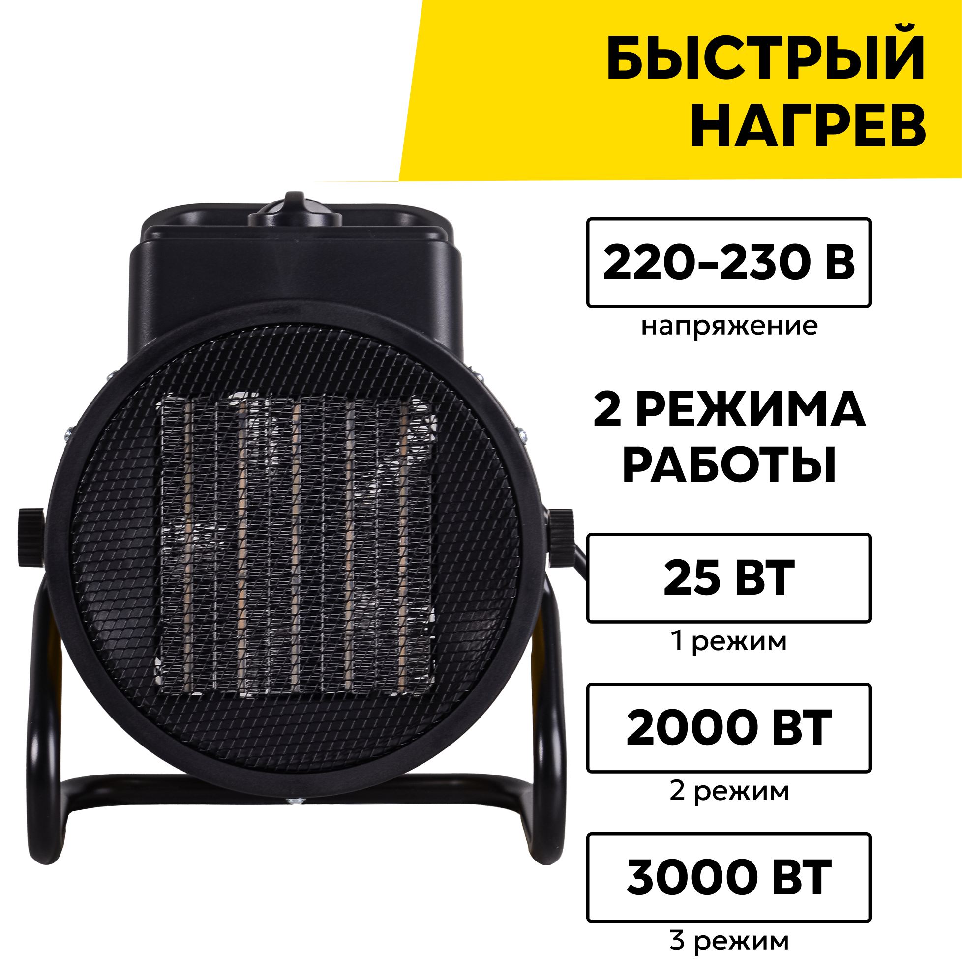 | Отзыв: | Взял для использования в гараже и на даче. Сама небольшая, ручка широкая, легко переносить. Очень устойчивая подставка, точно не уронишь случайно. Нагревательный элемент керамический. Пользоваться можно в любое время года - на обогрев или на проветривание. |