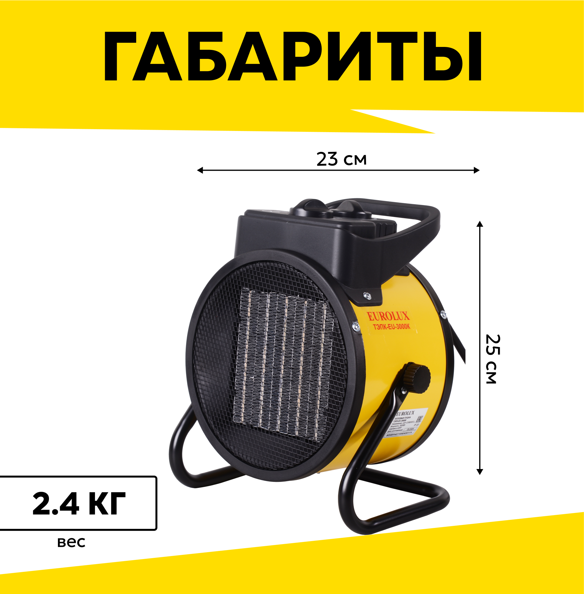Тепловая пушка Eurolux ТЭПК-EU-3000K, электрическая, 220 В, 25/2000/3000 Вт, керамика