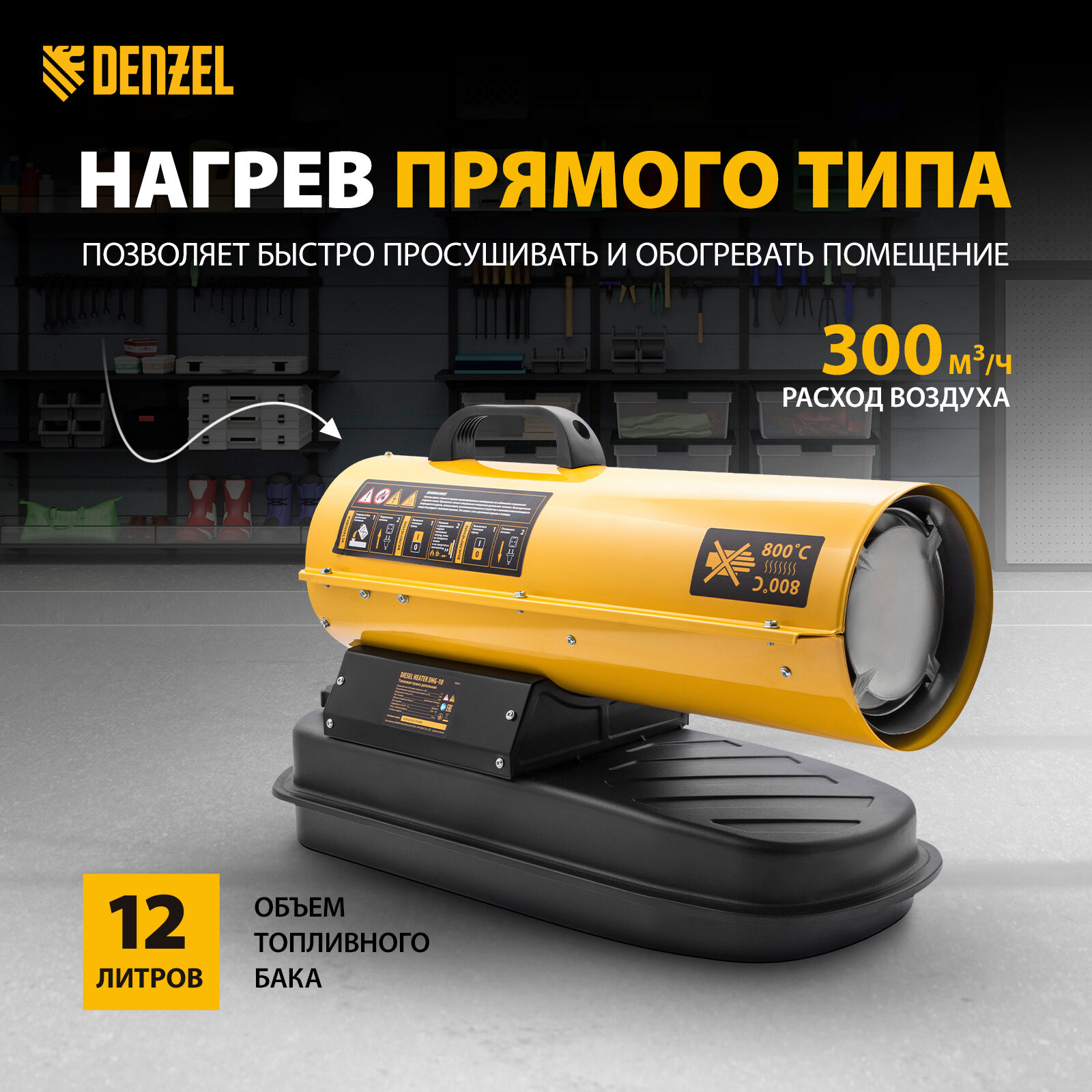 Дизельная тепловая пушка DENZEL DHG-10, 10 кВт, 300 м3/ч, прямой нагрев