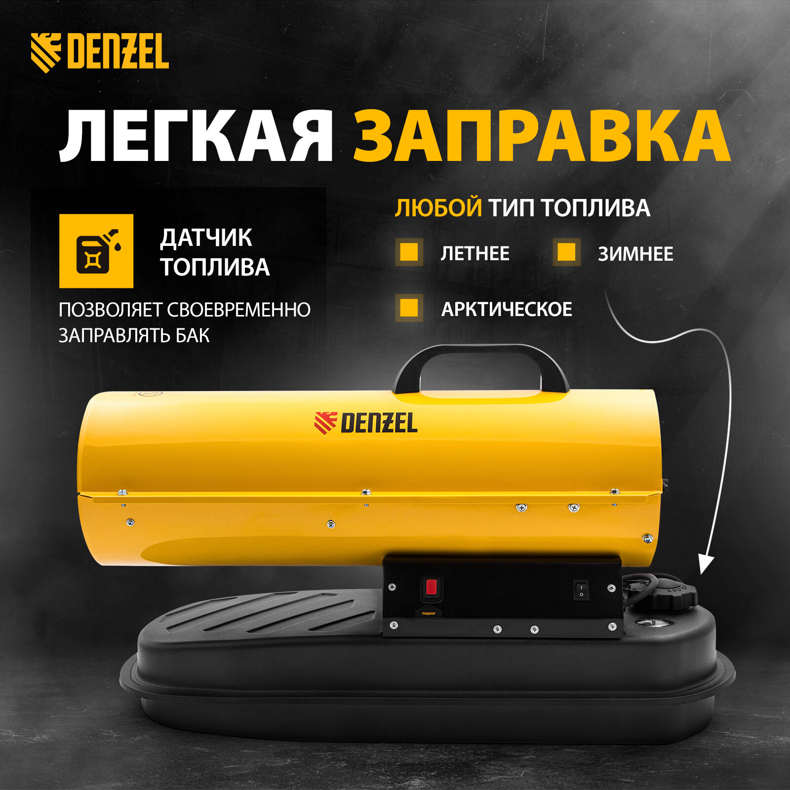 Дизельная тепловая пушка DHG-20, 20 кВт, 500 м3/ч, прямой нагрев// Denzel 96482 .