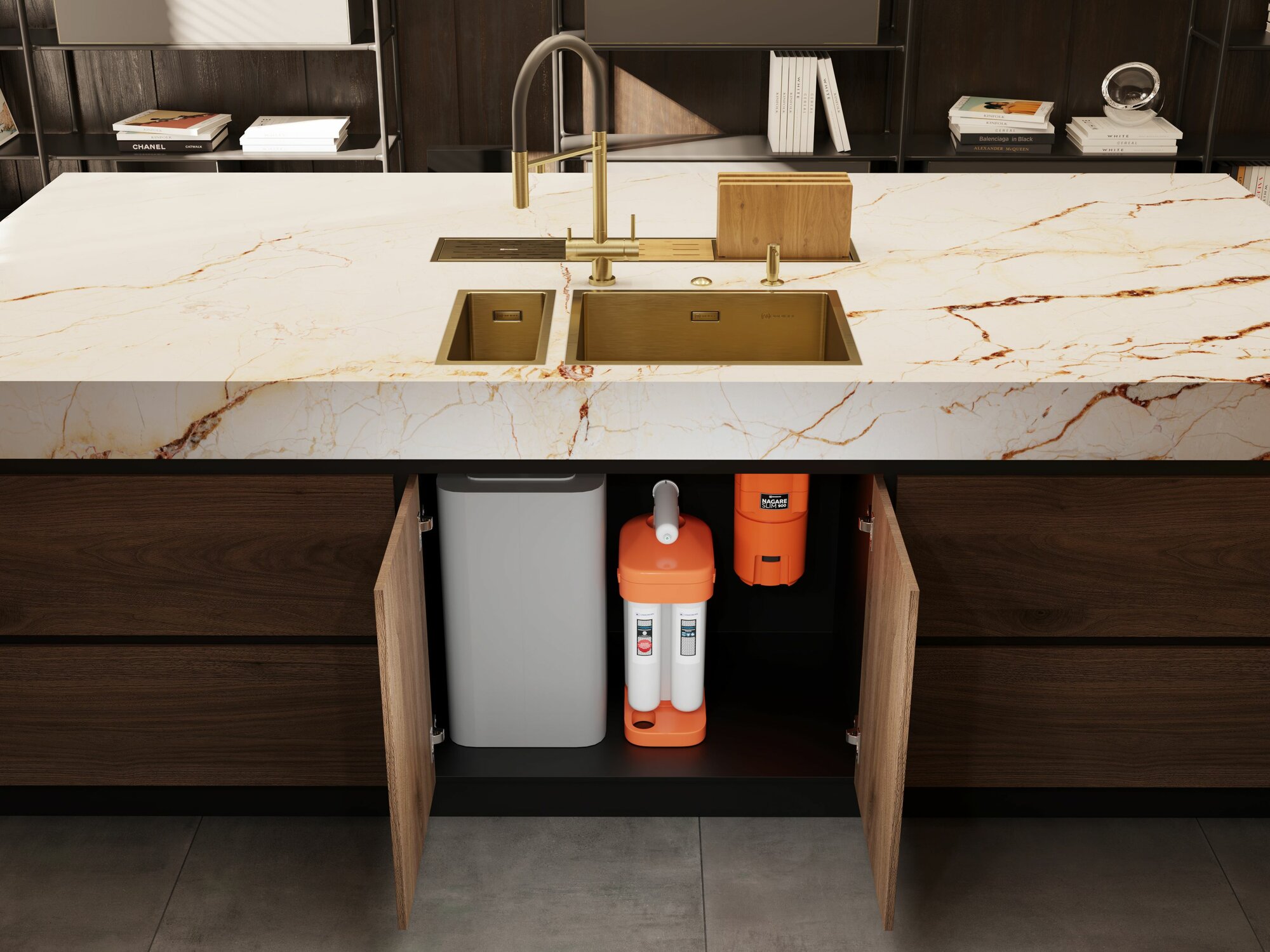 Интегрированная кухонная мойка 44 см, OMOIKIRI Taki 54-U/IF SIDE SF, матовое светлое золото