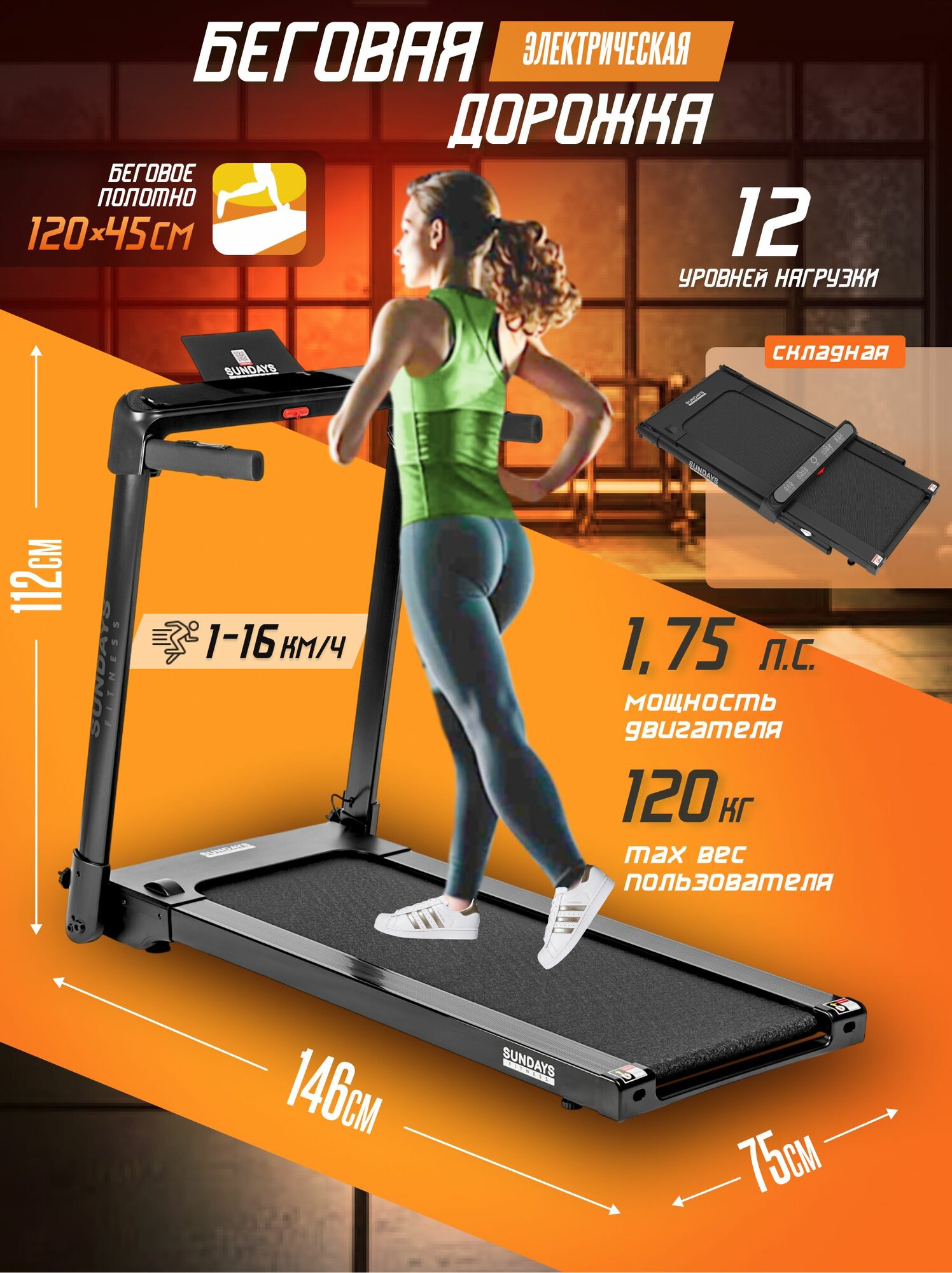Беговая дорожка электрическая для дома складная Sundays Fitness T56, черная интересное: