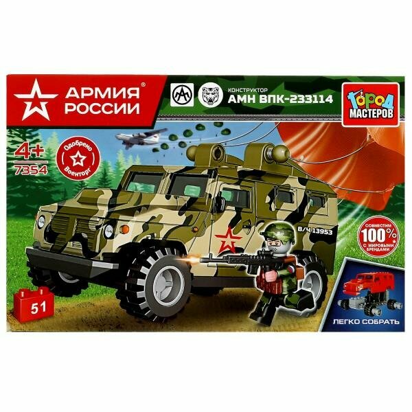 Конструктор Бронемашина Тигр на парашюте, 51 дет. (легко собрать) Город Мастеров 7354-KK