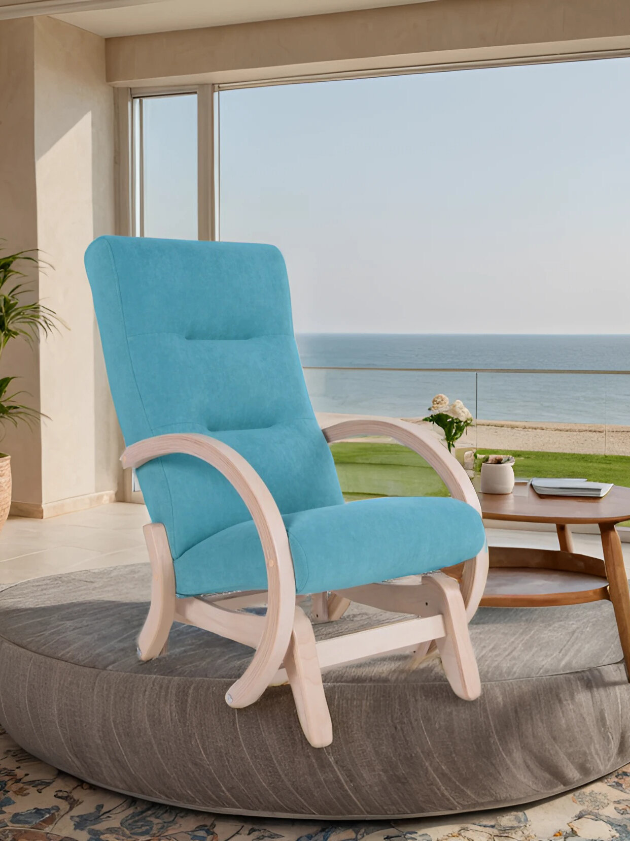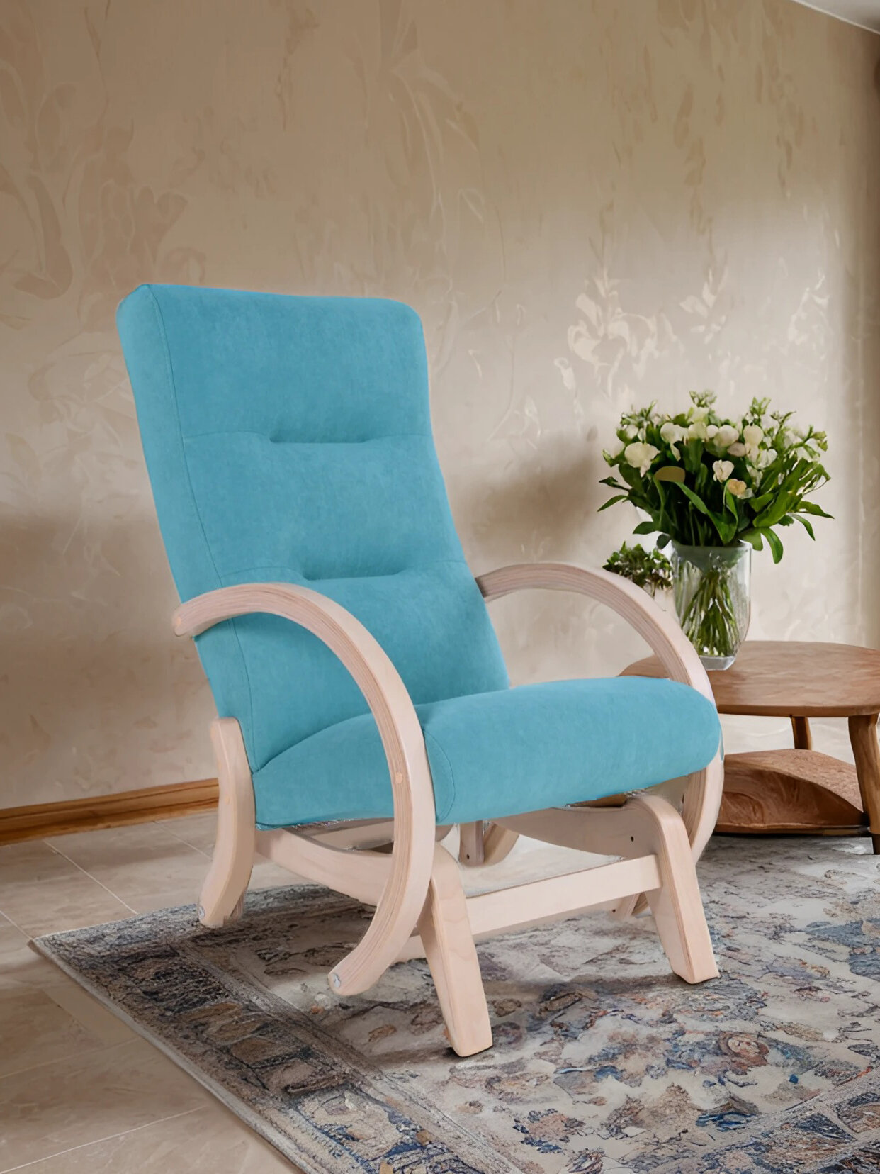 Кресло-качалка Мэтисон, Цвет обивки: минт, Цвет корпуса: береза белая
