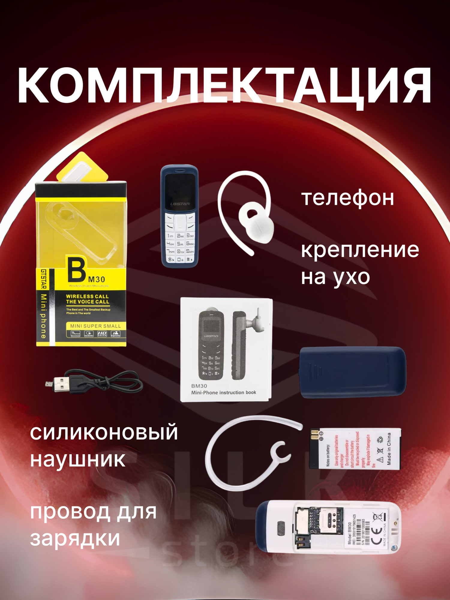 Самый маленький кнопочный телефон и гарнитура L8Star BM30 Синий