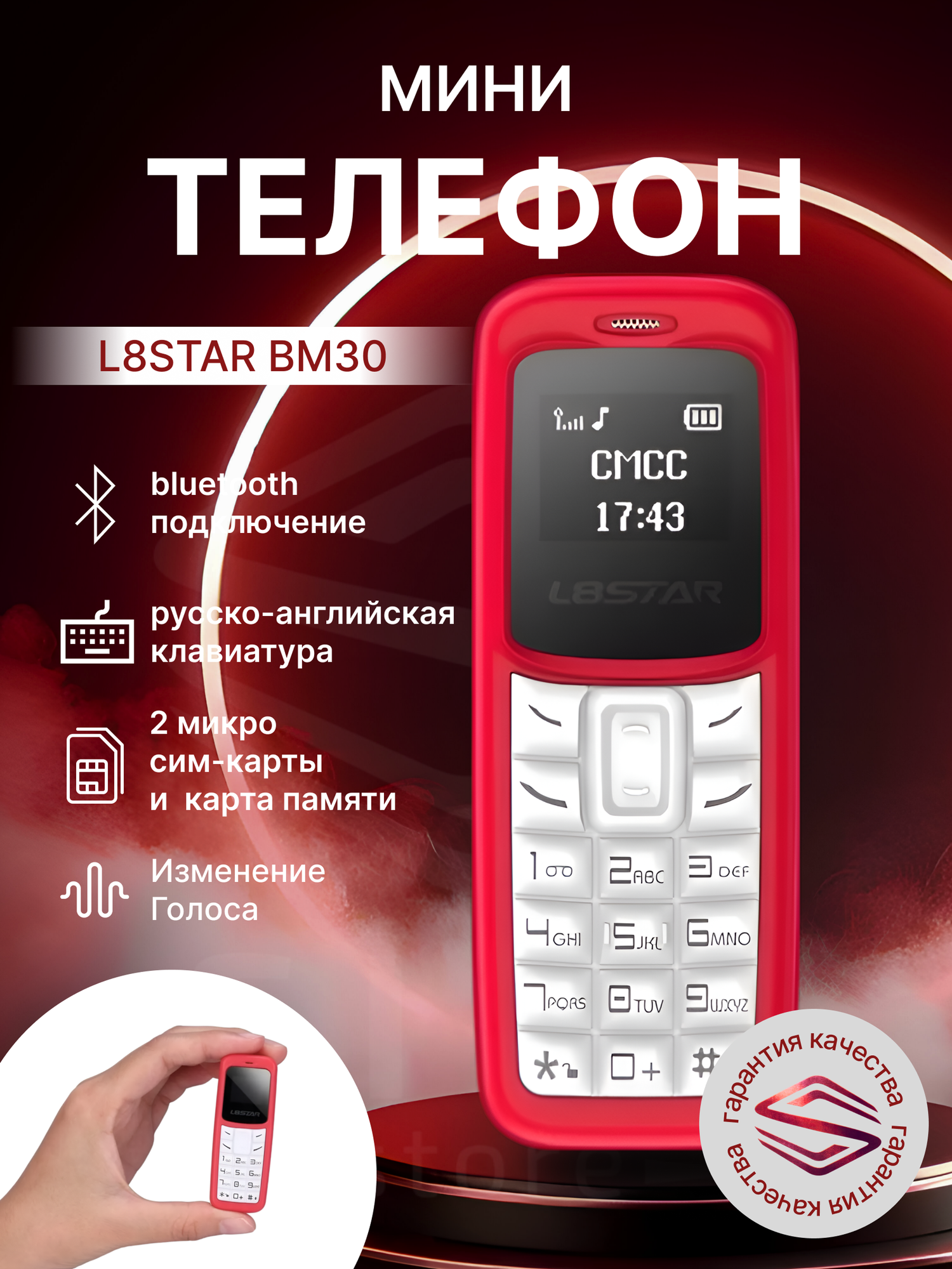 Мини телефон L8STAR BM30 с двумя сим картами, Красный