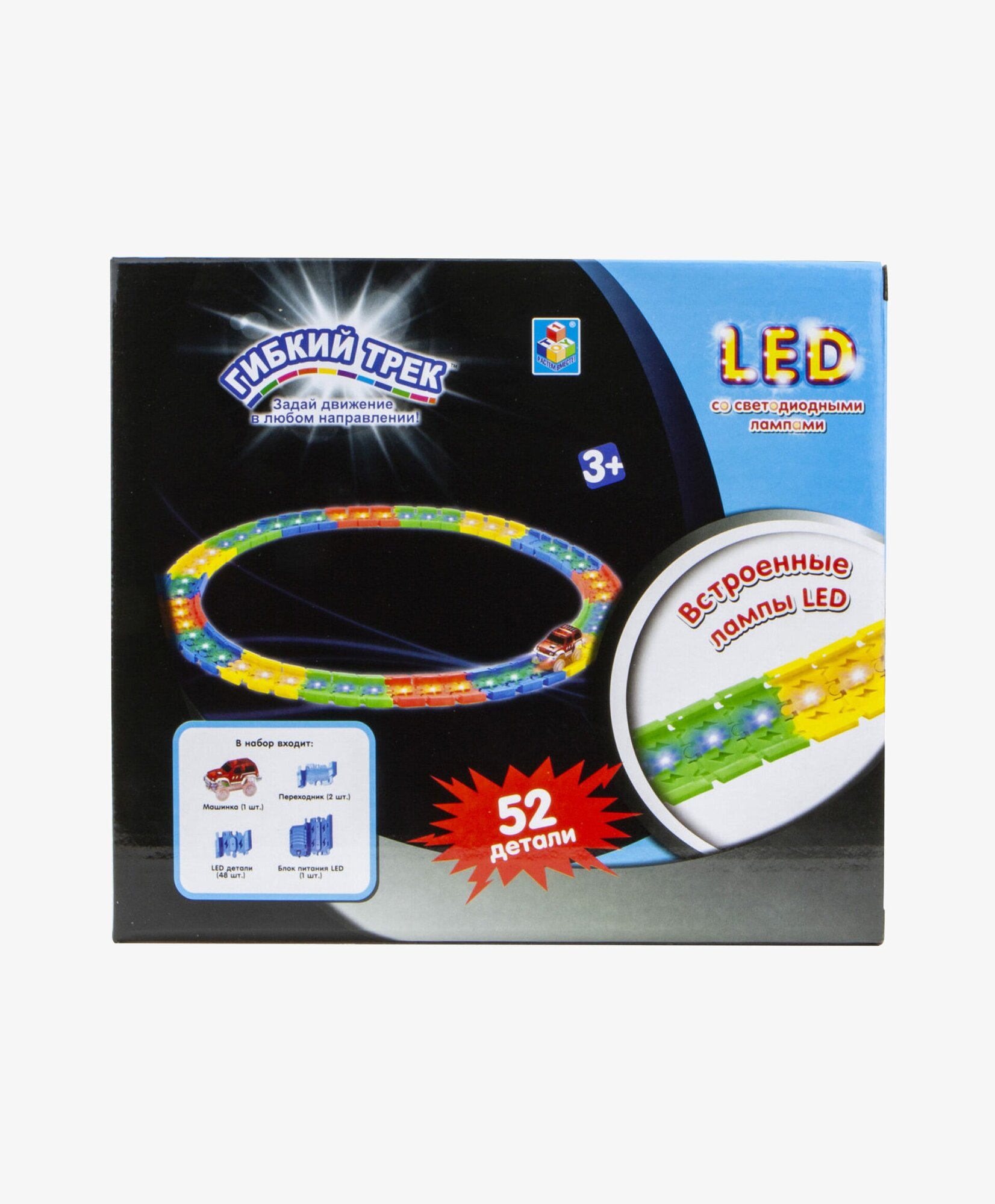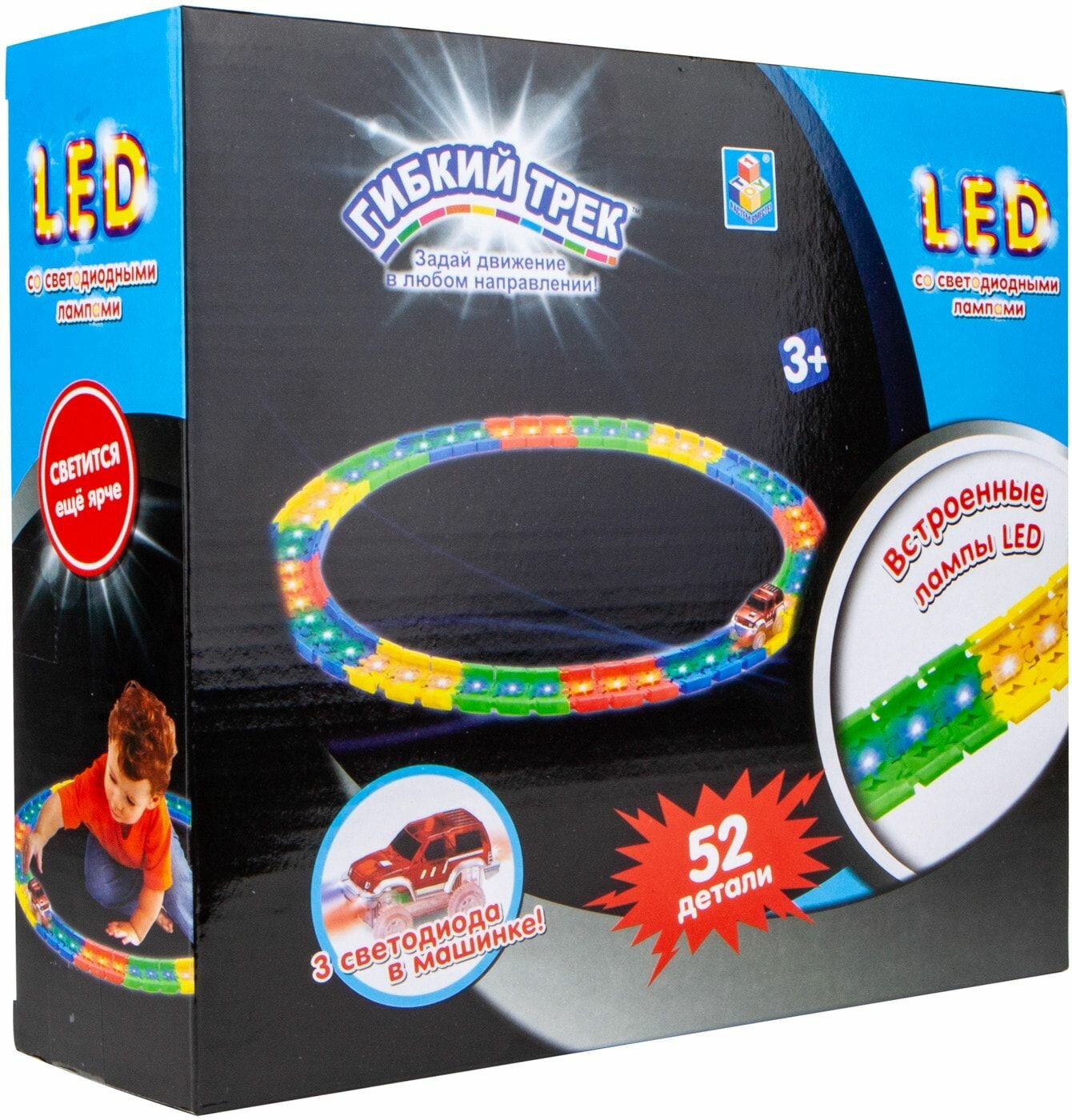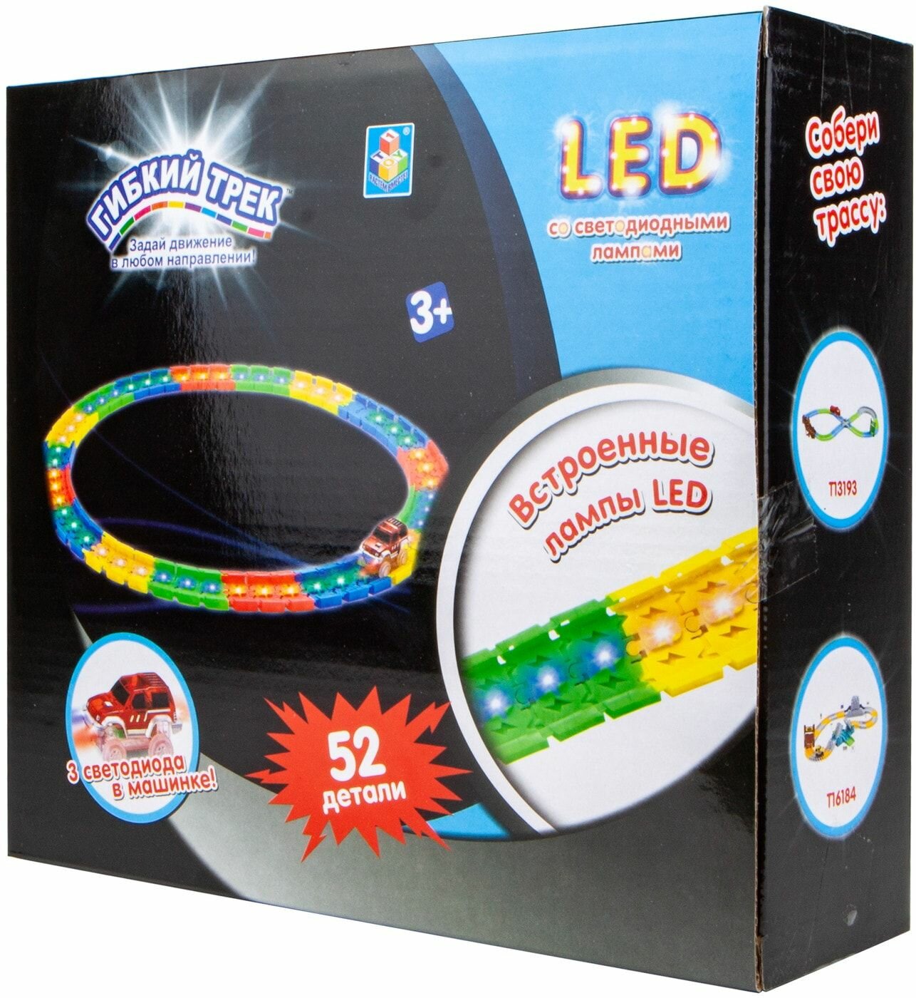 1toy гибкий трек LED со светодиодными лампами, 52 дет. (49 дет.c LED ламп.), люминисцентный,1 машинка с 3 ламп.