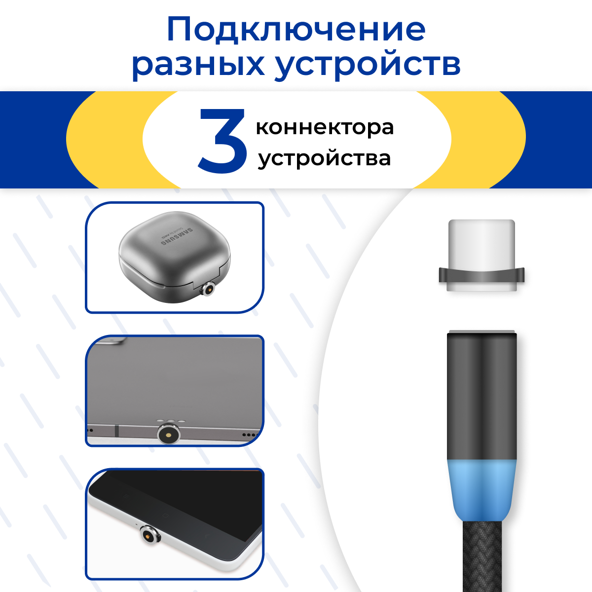 Кабель для зарядки 3 в 1, 50 см Type-C, Lightning, Micro USB / Универсальный провод с магнитными насадками и индикацией зарядки Тайп-С, Лайтнинг, Микро ЮСБ