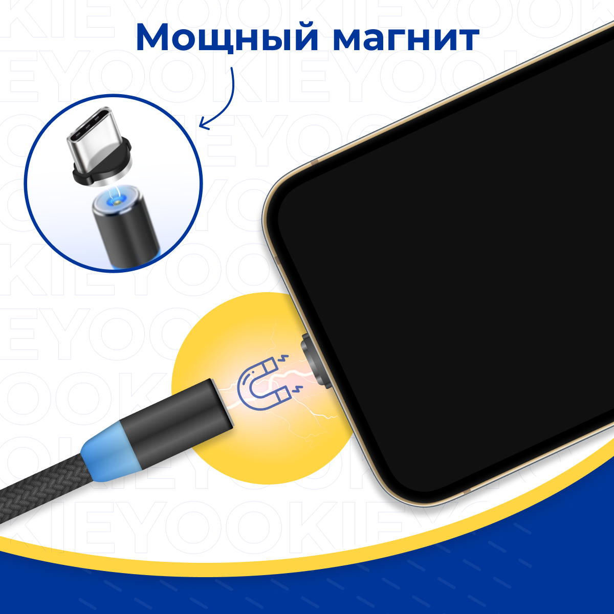 Магнитный поворотный кабель 3 в 1, Type-C, Lightning, Micro USB / Зарядка на айфон, андроид, самсунг (2М)