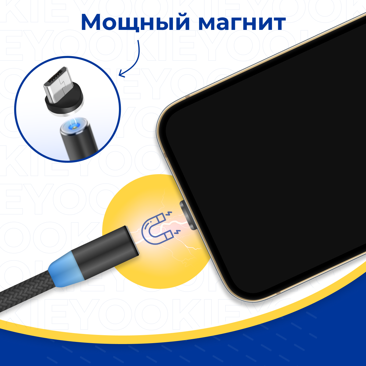 Магнитный поворотный кабель 3 в 1, Type-C, Lightning, Micro USB / Зарядка на айфон, андроид, самсунг (2М)