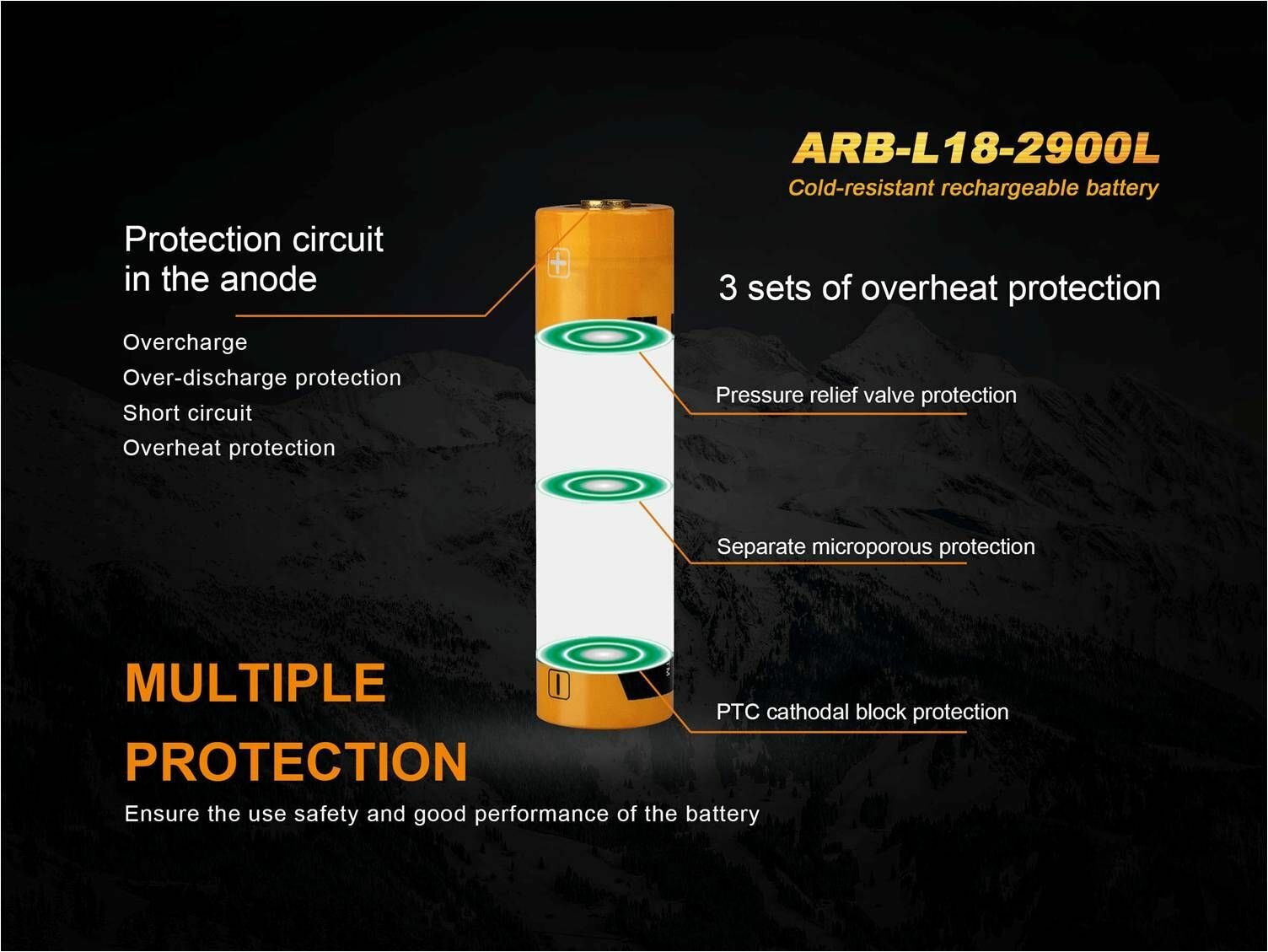 Аккумулятор Fenix ARB-L18-2900L 18650 Li-ion 2900 mAh, защищенный (морозоустойчивый, до - 40 С) - 1 шт. интересное: