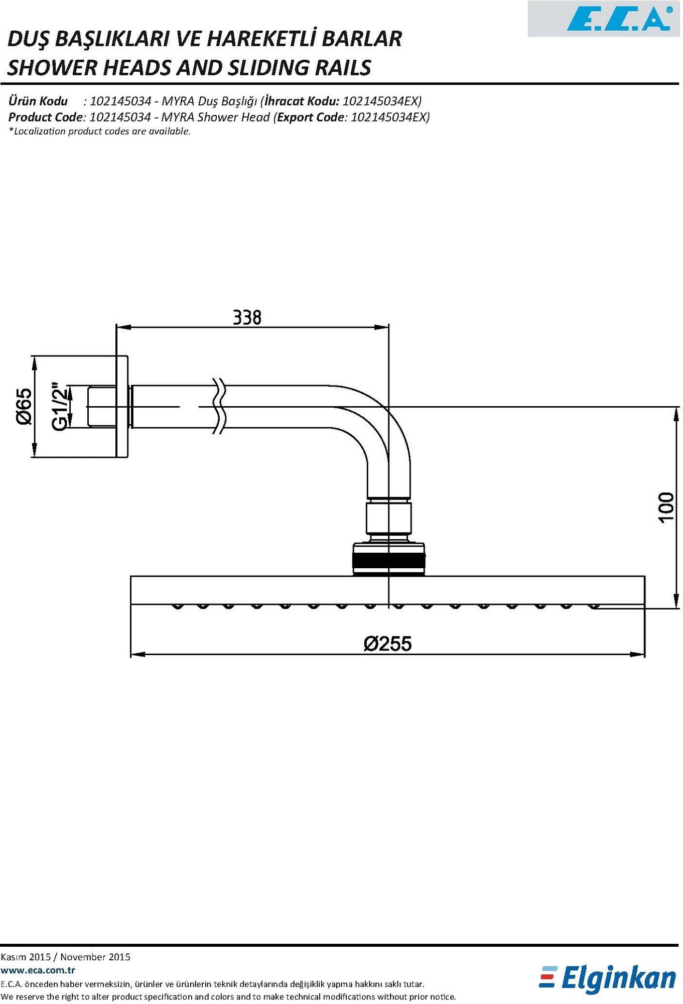 Верхний душ E.C.A. Myra, модель 102145034EX интересное: