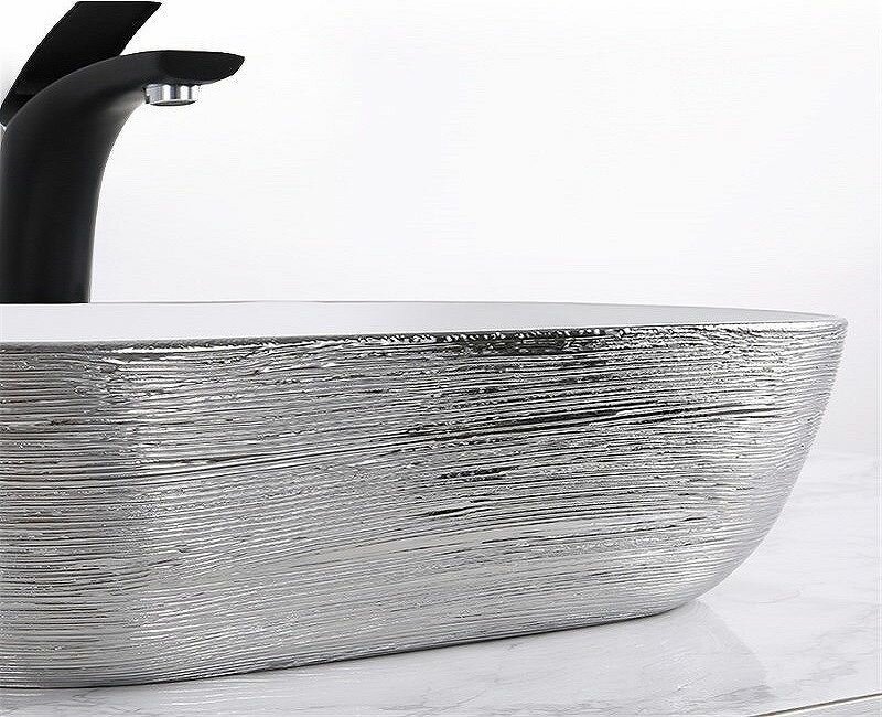 Раковина накладная CeramaLux NC D1333H131 46,5х34х13 см, белый/серебро