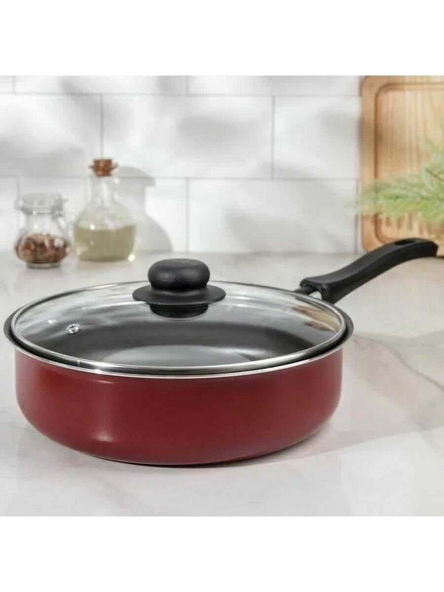 SCOVO Сотейник «Эксперт», 1,7 л, d=20 см, пластиковая ручка, стеклянная крышка, антипригарное покрытие, цвет бордовый