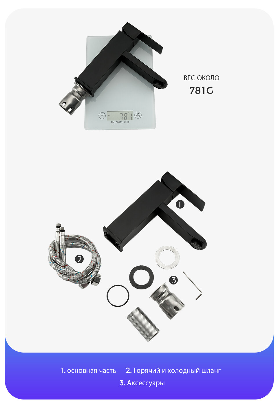| Комплектация | смеситель - 1 шт., гибкая подводка 45 см - 2 шт.,комплект креплений - 1 шт. |