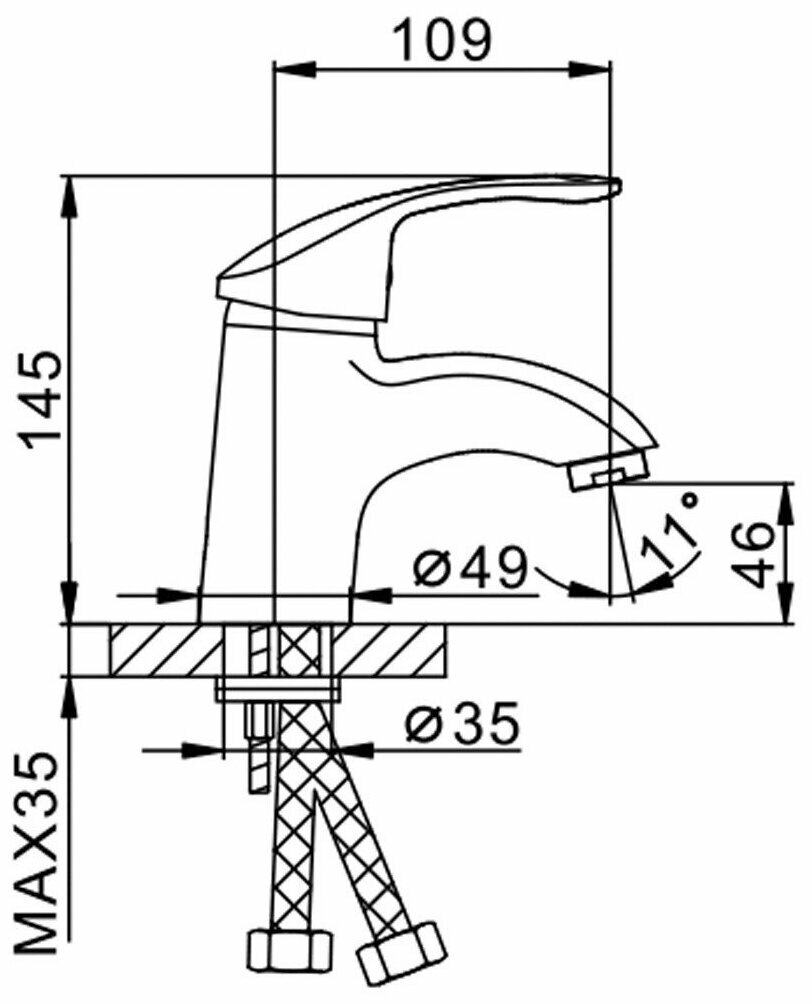 | Комплектация | смеситель, гибкая подводка, монтажный комплект |