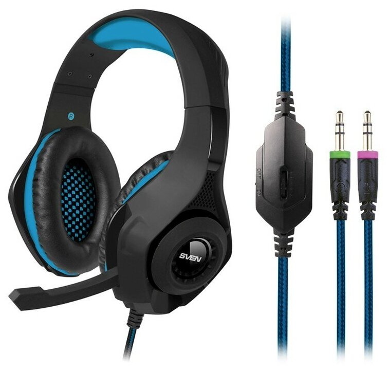 Гарнитура игровая Sven AP-G887MV, для компьютера, мониторные, черный / синий [sv-015626]