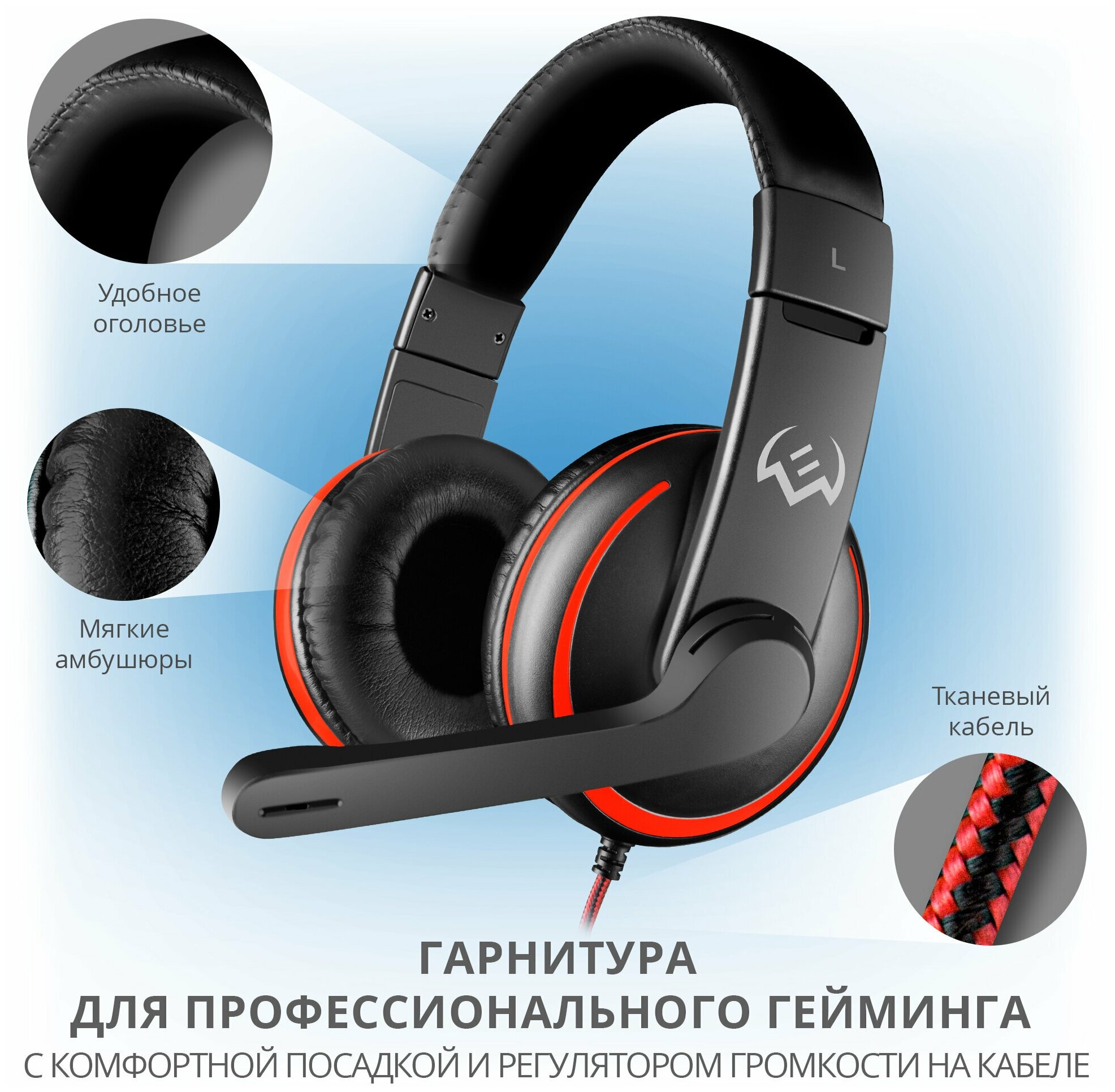 Гарнитура игровая Sven AP-G007MV, для компьютера и игровых консолей, накладные, черный / красный