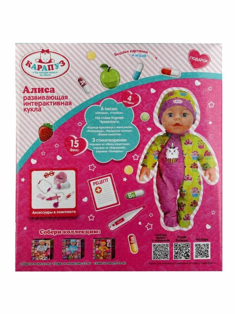 Пупс интерактивный алиса 30 см Чуковский Корней, набор доктора карапуз Y30BB-DP-DOC-22-RU
