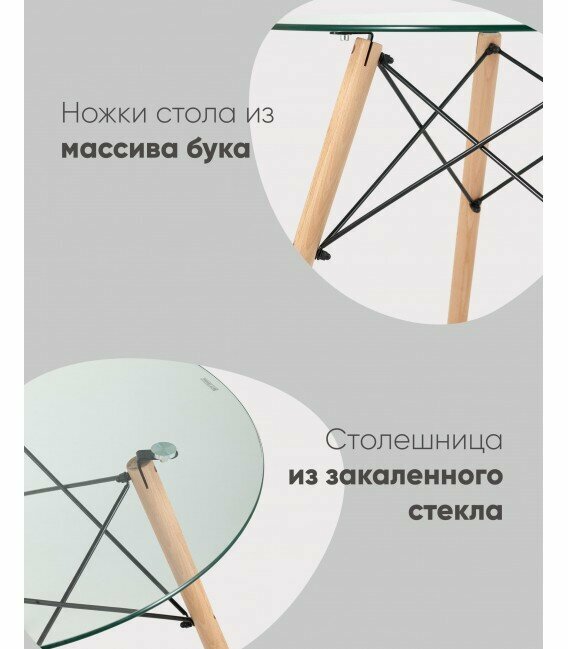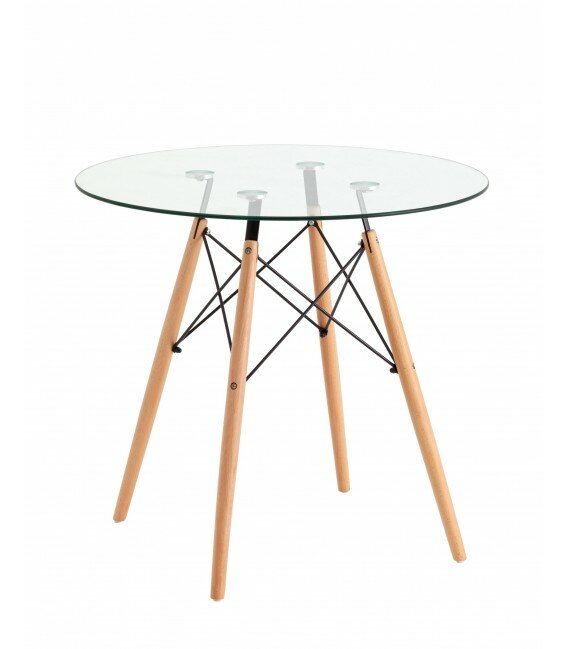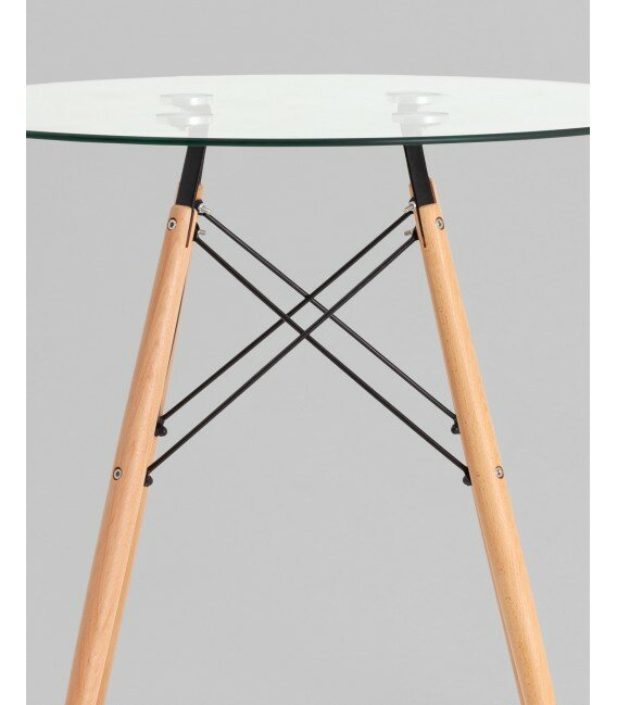 Стол круглый обеденный DSW D80, стеклянный, на деревянных ножках