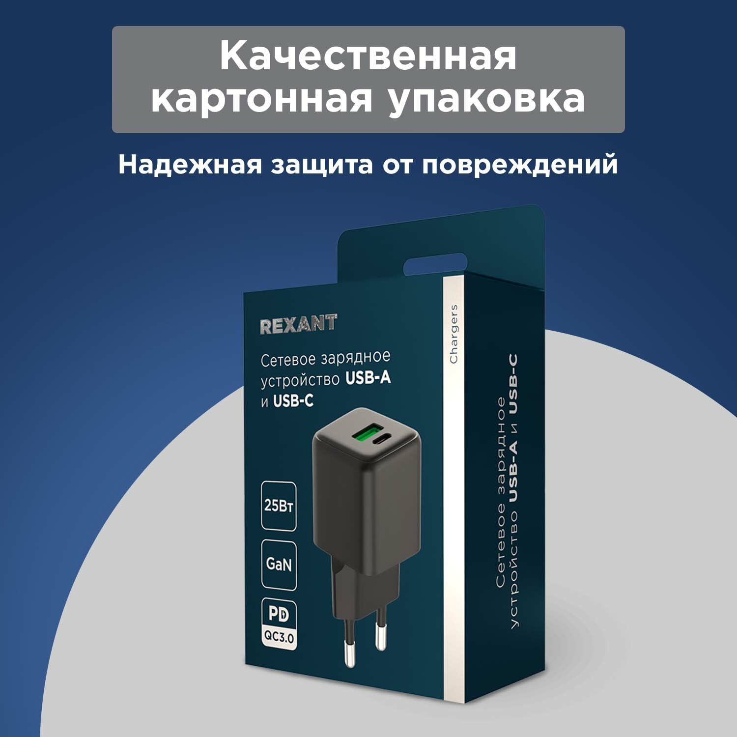 Купить Сетевое зарядное устройство с двумя портами USB-A и Type-C, 25Вт GaN REXANT