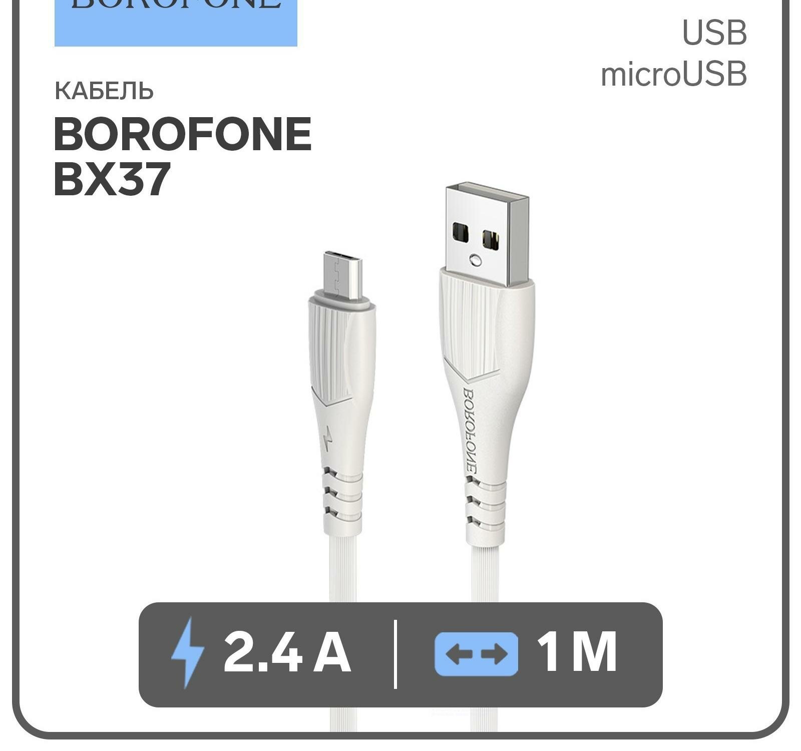 Кабель USB BOROFONE BX37 Wieldy, USB - MicroUSB, 2.4А, 1 м, белый