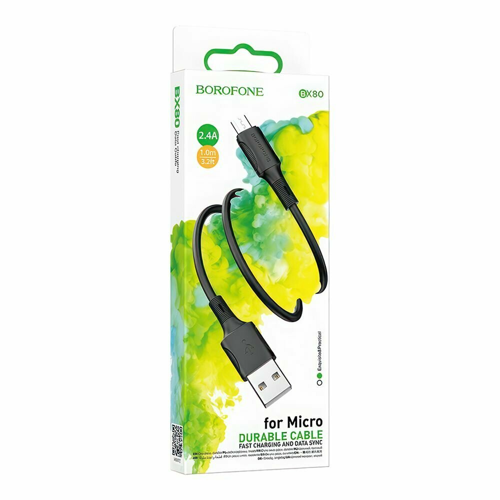 Дата-кабель Borofone BX80 USB-MicroUSB, 1 м, черный