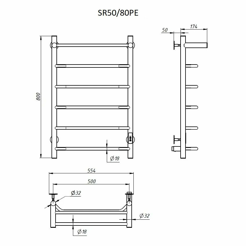 Электрический полотенцесушитель TermoSmart 500x800 мм /7п/, SR50/80PE