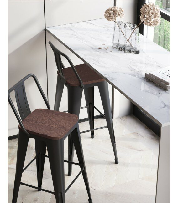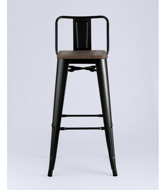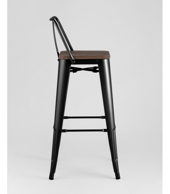 Барный стул Stool Group Tolix Wood со спинкой черный глянцевый, темное дерево