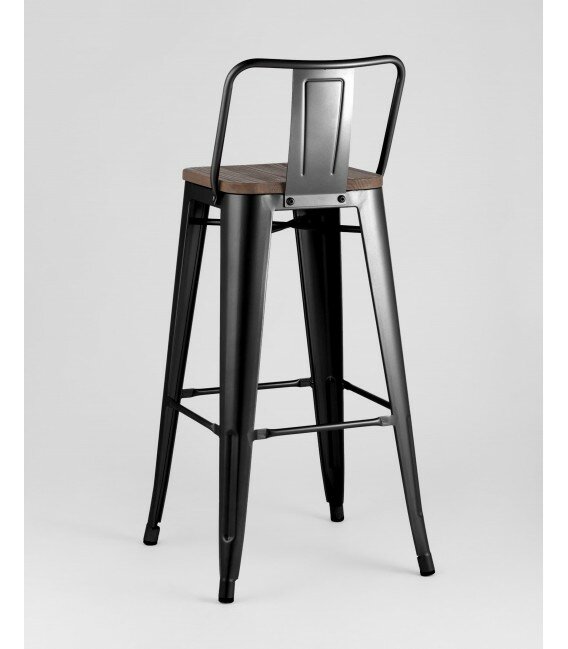 Стул барный Stool Group TOLIX со спинкой черный, глянцевый + темное дерево