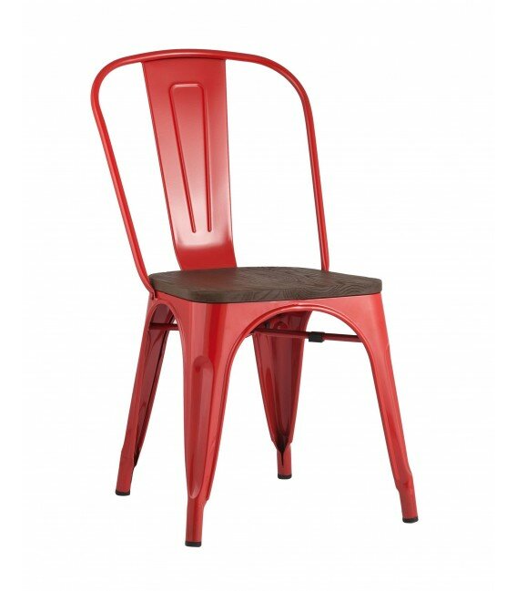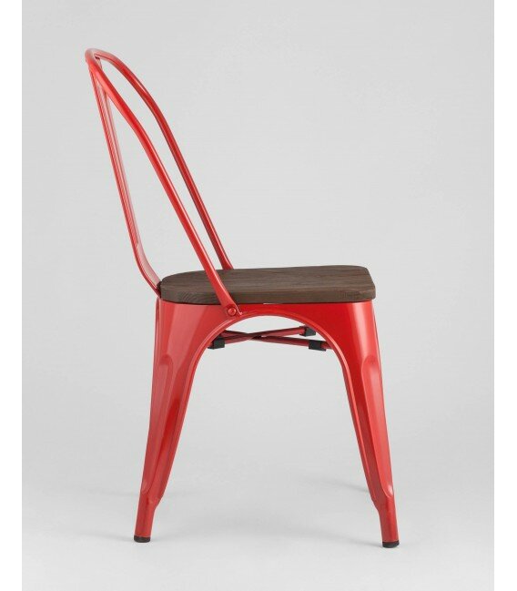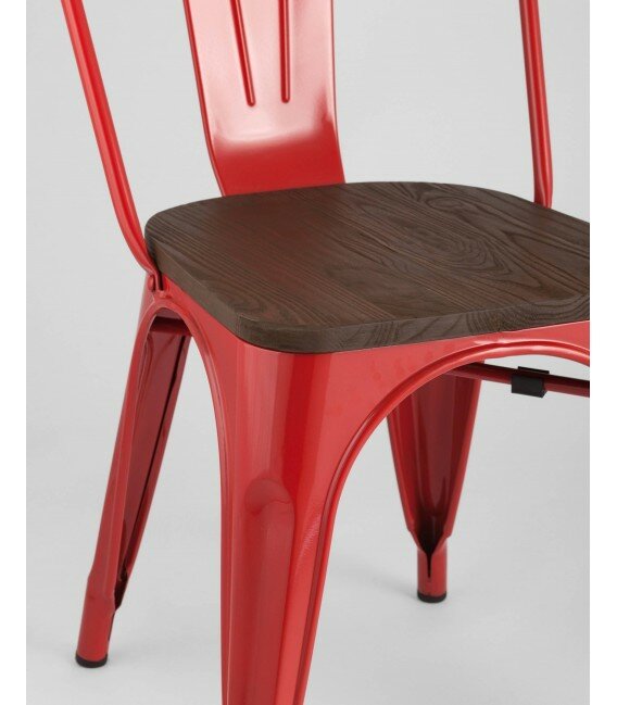 Стул Tolix красный глянцевый + темное дерево (состоит из 1 упаковки) .