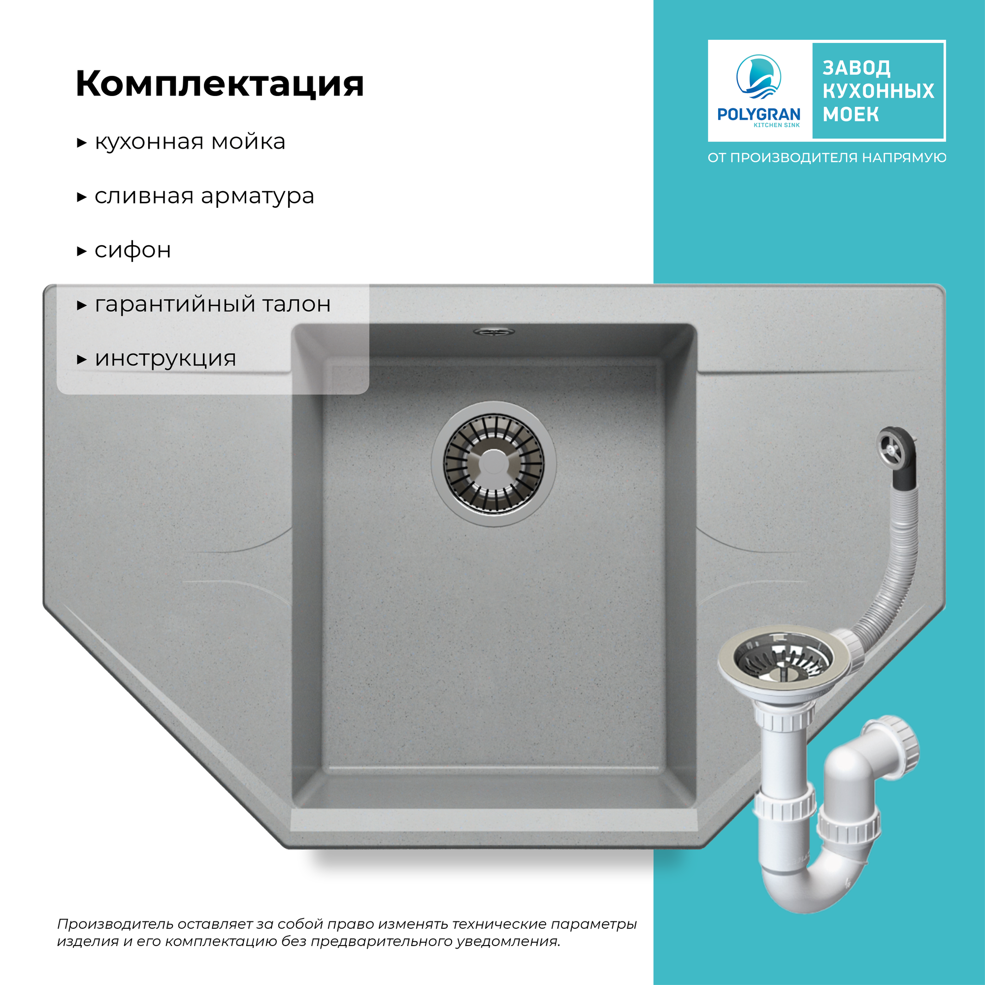 Купить Мойка для кухни каменная POLYGRAN Riff-800, серая, врезная, с крылом (№14 Серый)