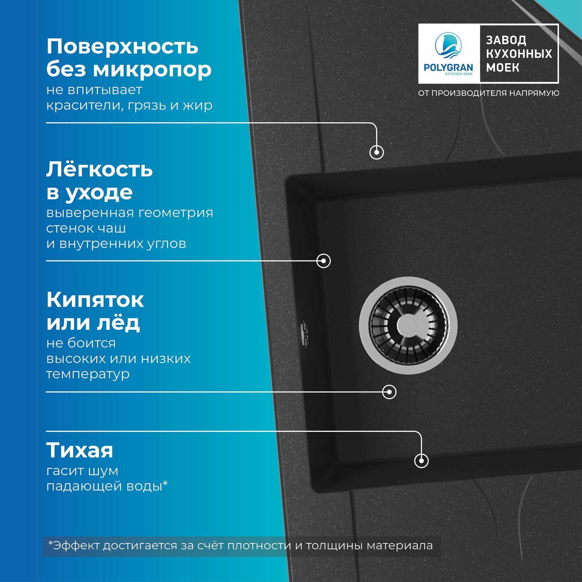 СохранитьКухонная мойка из искусственного камня Polygran RIFF-800 (№16 Черный) интересное: