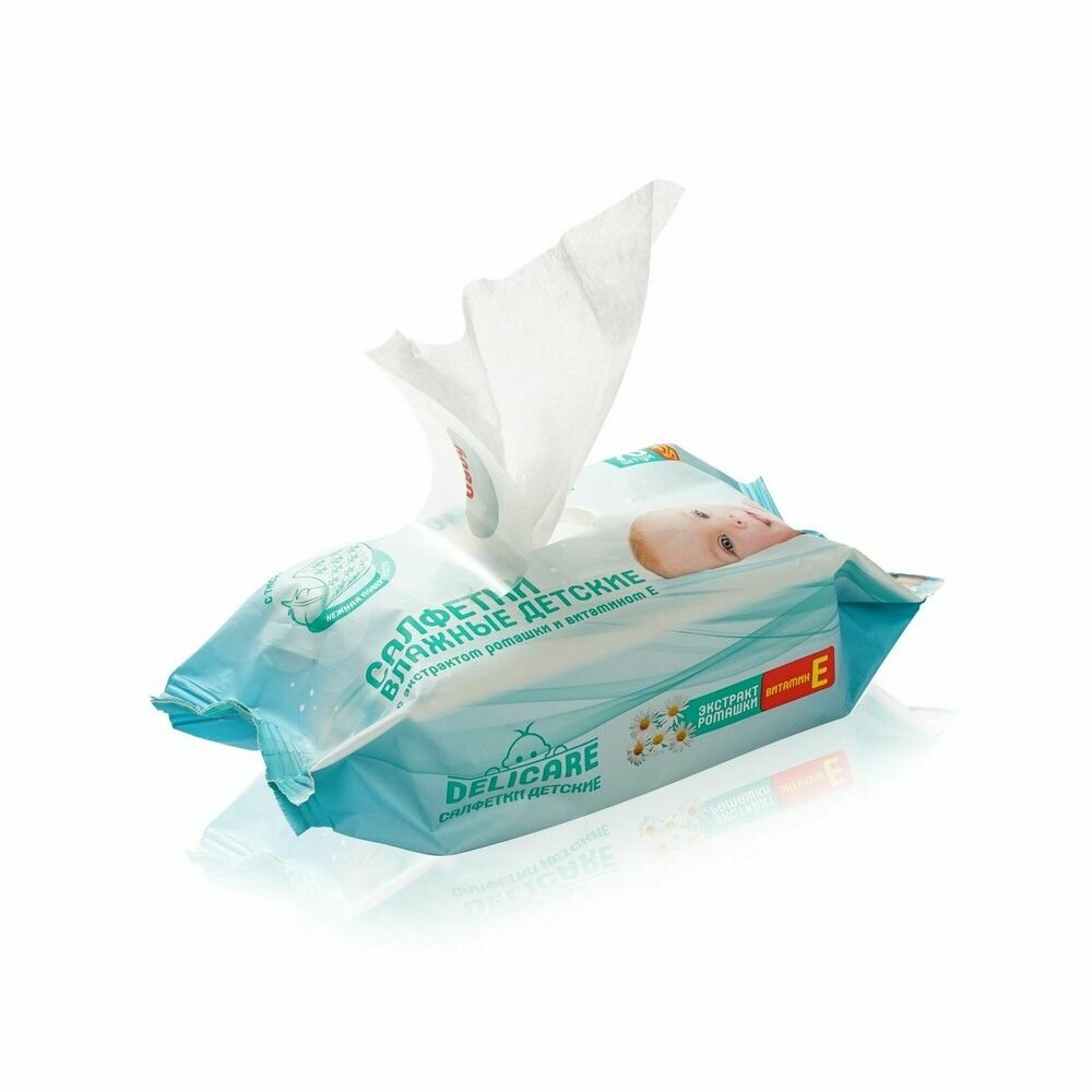 Влажные салфетки Delicare для детей , с экстрактом ромашки и витамином Е 80шт интересное: