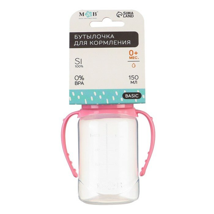Купить Бутылочка для кормления M&B, классическое горло, с ручками, от 0 мес, 150 мл, розовый
