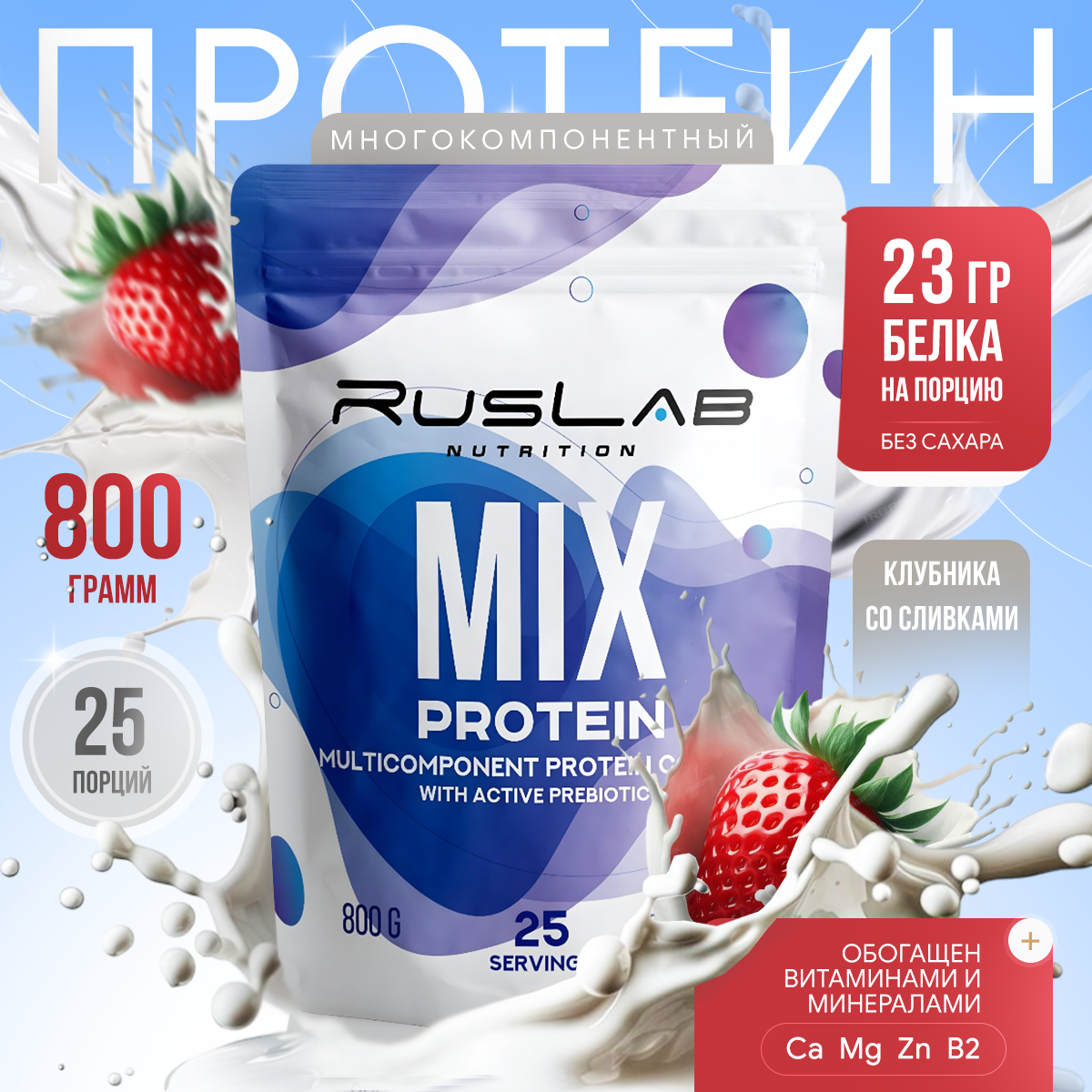 Купить Протеин многокомпонентный MIX PROTEIN (800 гр), вкус клубника со сливками