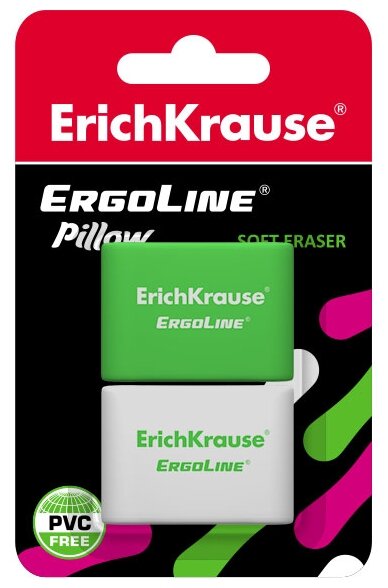 ErichKrause Набор ластиков 2 штуки ErgoLine Pillow, 33 х 21 х 8 мм, мягкий, гипоаллергенный, в блистере