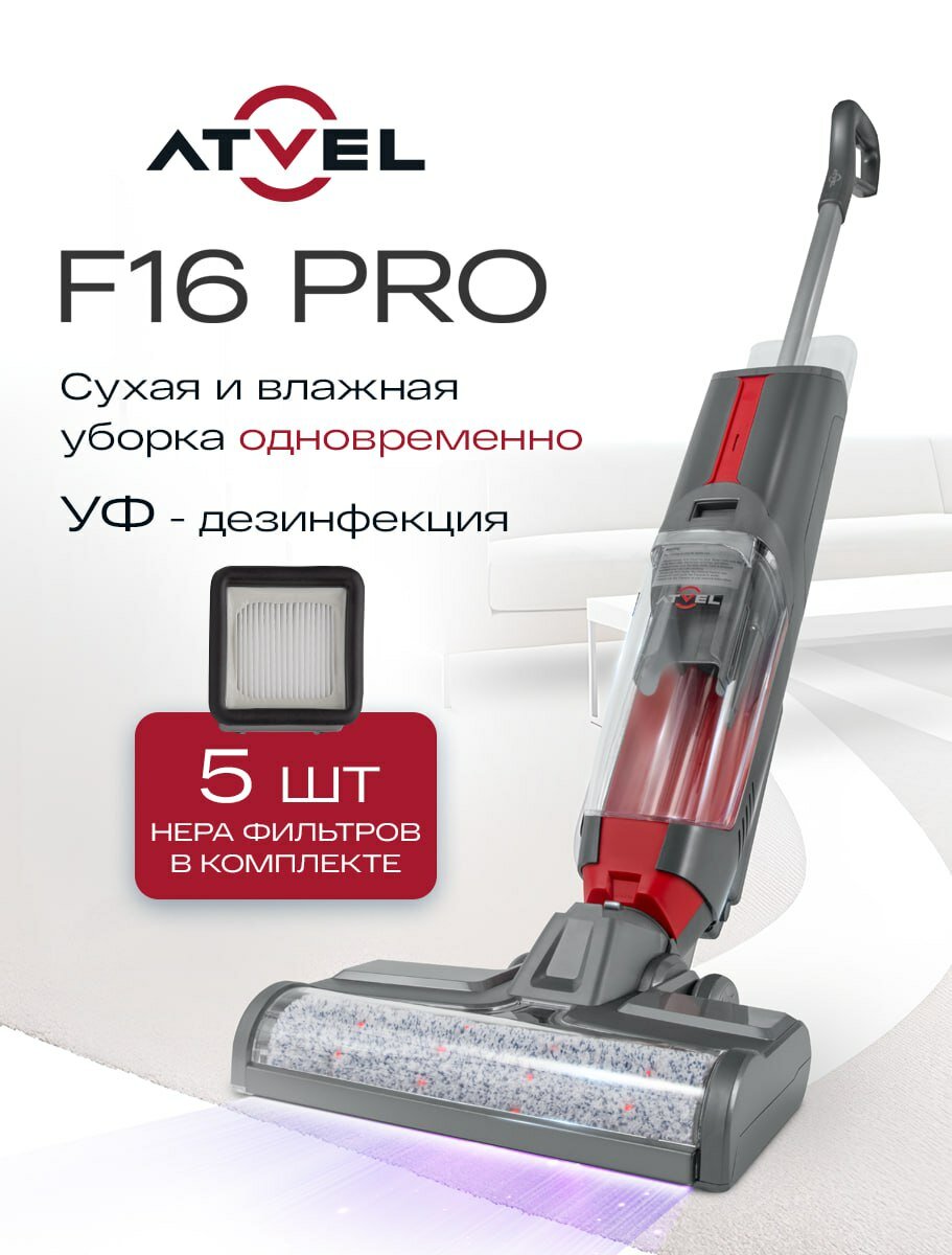 Моющий пылесос беспроводной вертикальный для дома Atvel F16PRO + 5 HEPA-фильтров для сухой и влажной уборки интересное: