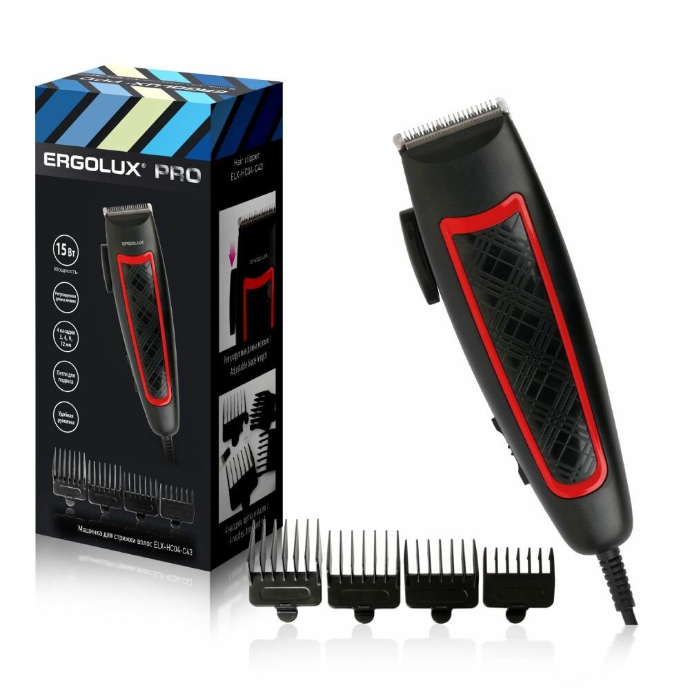 Купить Машинка для стрижки волос ERGOLUX ELX-HC04-C43 черный с красным, 15Вт, 220-240В
